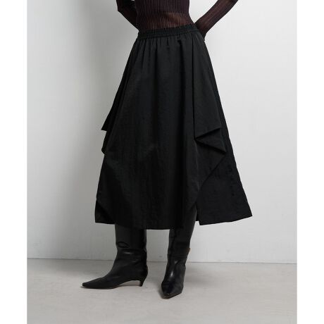 特殊加工でハリとコシのあるイレギュラーヘムスカート。シャープな印象でありながら、軽やかな着心地と、歩くたびにドラマティックに揺れるヘムラインが、着る人の個性を引き立てます。