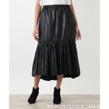 滑らかな光沢素材と裾のプリーツ切り替えが、モードな存在感を放つスカート。腰回りはすっきりと、裾に向かってドラマティックに広がるシルエットが魅力です。美しく揺れる前後差のあるヘムラインも、こなれたアクセントに。ウエストは総ゴム仕様で、ストレスフリーな穿き心地を叶えます。シンプルなトップスを合わせるだけで、コーディネートを主役級に格上げしてくれるデザインコンシャスな一枚です。スナップボタン、ホック&ファスナー開閉が可能。