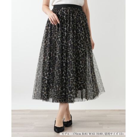軽やかなチュール素材にレオパード柄風プリントを施したロングスカート。初秋にぴったりのやや薄手の生地は裏地付きで透けにくく安心して着用できます。伸縮性のある素材で動きやすく、ウエストはゴムベルト仕様ですっきりフィット。ふんわりとしたチュールの質感が女性らしさを引き立てつつ、トレンド感あるアニマルプリントがコーデに華やぎをプラスします。シンプルなトップスと合わせるだけで、シーズンムード漂うスタイルが完成。カジュアルからきれいめまで幅広く活躍する一枚です。
