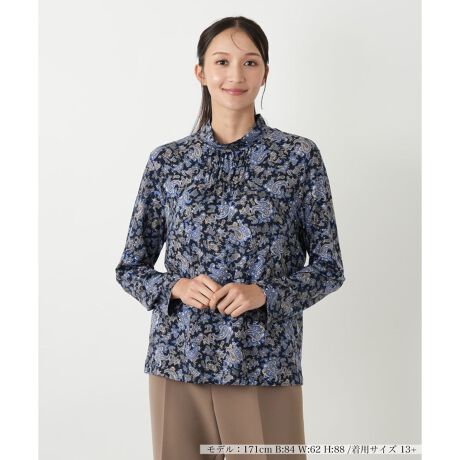 エレガントなペイズリー柄が目を引く、ハイネックのカットソーです。繊細な柄が、コーディネートに上品な華やかさをプラスし、顔周りを美しく彩ります。首元を優しく包み込むハイネックデザインは、暖かさを保ちながらもすっきりとした印象を与えます。長袖ですので、一枚での着用はもちろん、ジャケットやカーディガンのインナーとしても活躍します。快適な着心地で、デイリーユースからお出かけまで幅広く着用いただけます。ご自宅で手洗いができるウォッシャブル仕様で、お手入れも簡単に行えます。