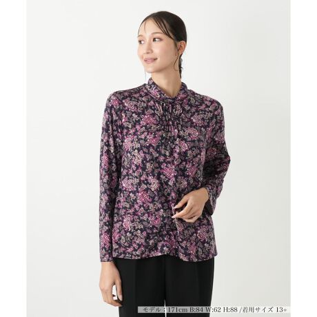 エレガントなペイズリー柄が目を引く、ハイネックのカットソーです。繊細な柄が、コーディネートに上品な華やかさをプラスし、顔周りを美しく彩ります。首元を優しく包み込むハイネックデザインは、暖かさを保ちながらもすっきりとした印象を与えます。長袖ですので、一枚での着用はもちろん、ジャケットやカーディガンのインナーとしても活躍します。快適な着心地で、デイリーユースからお出かけまで幅広く着用いただけます。ご自宅で手洗いができるウォッシャブル仕様で、お手入れも簡単に行えます。