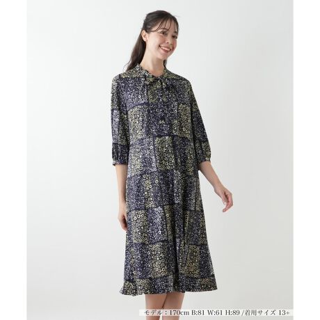 【ウォッシャブル】プリントボウタイワンピース【ROCHAS Premiere】