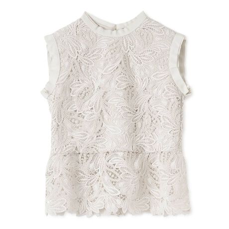 孔雀の羽をモチーフにしたコード刺繍の総レースが、華やかさと気品を纏うブラウス。
