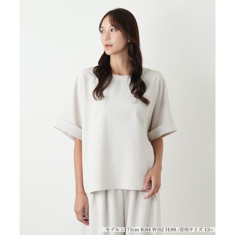 デコルテを美しく見せるネックラインは、顔周りをすっきりと引き締め、洗練された印象を与えるブラウス。やや薄手の生地ながらも程よいドレープ感があり、インナーとの組み合わせで表情の変化をお楽しみいただけます。サイドスリットが施されているため、動きに合わせて軽やかなニュアンスをプラス。一枚でサマになるのはもちろん、同素材のアイテムと合わせれば、旬のセットアップスタイルが完成します。ご自宅で手洗い可能なウォッシャブル仕様。