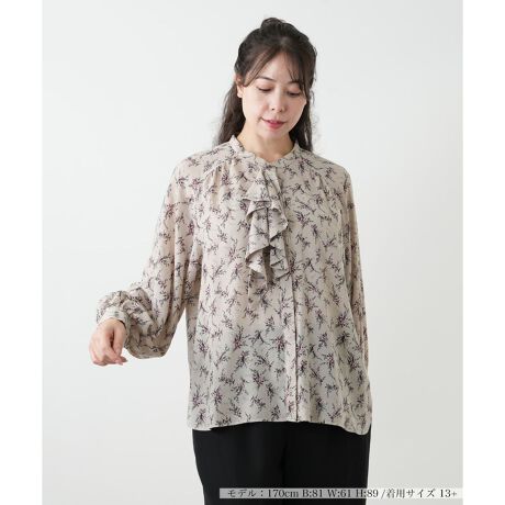 【ウォッシャブル】フラワー柄ボウタイブラウス【BOURGE】