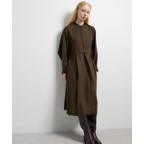 一枚着るだけで洗練されたスタイリングが完成するのが最大の魅力。クラシックでクリーンな印象のスタンドカラーが、顔周りをすっきりと見せてくれます。袖はカーブラインで構成された立体的なシルエットになっており、さりげないデザイン性が光るアクセントに。ゆったりとした着心地で、リラックス感がありながらも上品な佇まいを叶えます。