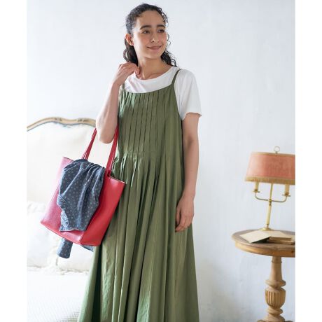 たっぷりと寄せたプリーツが、動くたびに揺れる立体的なシルエットを描くジャンパースカート。薄手のコットン素材が風をはらんでふわりと広がり、見た目にも涼やかな印象です。調節できる肩ひもやフィット感のある背中のゴム、両サイドに配したポケットといった嬉しいディテールもポイント。Tシャツと合わせてカジュアルダウンしたり、一枚でリゾート風に着こなしたりと、これからの季節の主役になれるアイテムです。