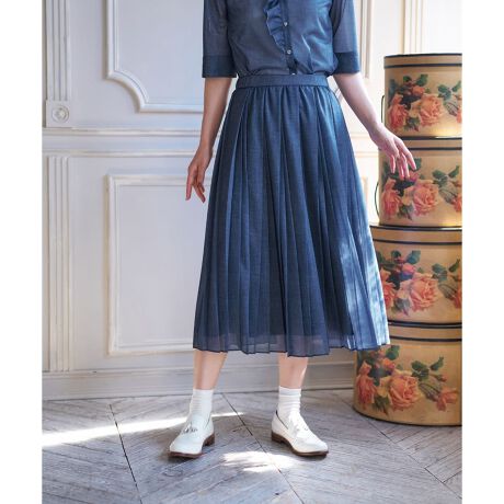 しなやかに揺れるプリーツが、上品な佇まいを演出するスカート。裾に向かって美しく広がるAラインシルエットは、気になるヒップや脚のラインを拾わず、自然に体型をカバーしてくれます。ナチュラルな風合いの素材が、プリーツスカートの甘さをほどよく抑え、カジュアルなトップスとも好相性です。表地はもちろん、裏地にまでストレッチ性の高い素材を採用したことで、一日中ストレスフリーな穿き心地を実現しています。ウエスト後ろはゴム仕様でリラックス感を高めました。ご自宅で手洗いできるイージーケアも嬉しいポイントです。