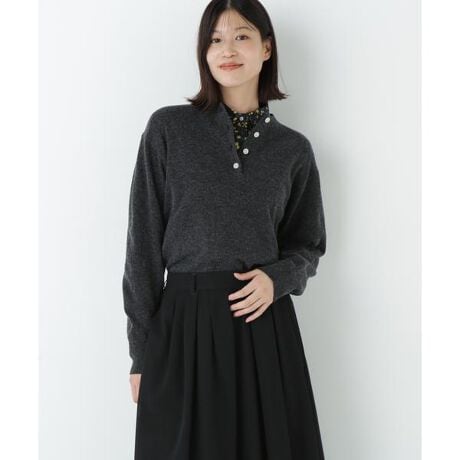 衿がミラノリブできちんと感があるヘンリーネックのニットプルオーバーです。ヘンリーネックはトレンドディテールで襟元を新鮮なバランスに仕上げました。