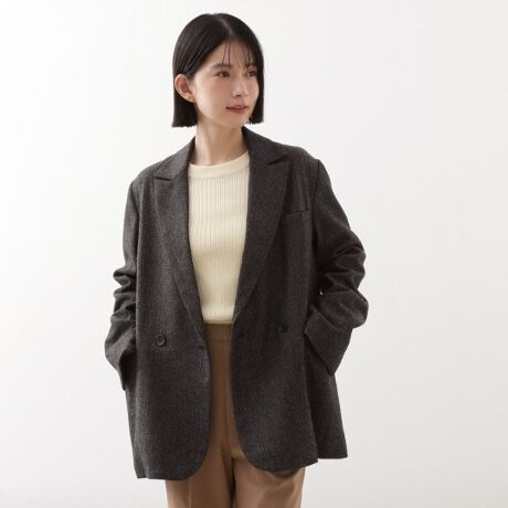 ウール混の良質な生地に、ヘリンボーンとチェック柄がクラシカルなWブレストジャケットです。