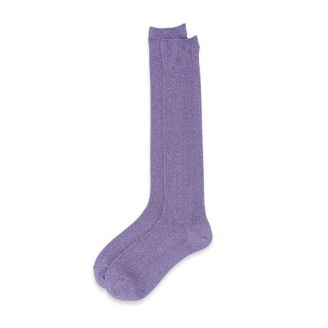 足元にきらめきを添える、ラメリブソックス。ラメ感の強い糸で繊細に編み立てられたリブ編みは、ほのかな透け感があり、華やかさと軽やかさを兼ね備えたデザインです。存在感がありながらもコーディネートに馴染みやすく、パンプスやサンダルとのレイヤードにもおすすめの一足です。