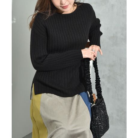 もちもちで柔らかな肌触りが特徴のニットプルオーバー。程よい厚みでしっかりとしたリブの編地で仕上げました。控えめな開きのクルーネックでシンプルながら上品に着まわせるので大人な印象にも◎