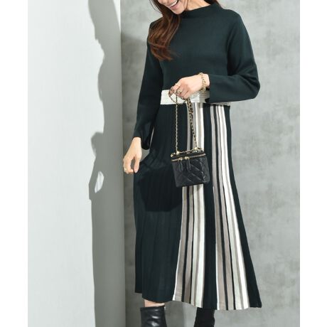 [型番:23153021]大人のサイドストライプワンピース人気のサイドプリーツワンピース。肌さわりが良く柔らかいニット素材を使用し、着心地は抜群のお勧めな1枚です。これからのシーズンに活躍するネックデザインも魅力◎1枚着るだけで今年らしい旬なスタイルに決まりまます。ウエストから裾にかけて自然に広がりシルエットで女性らしさをプラス。また、ウエスト部分にあしらわれたベルト風な切り替えで大人なアクセントに◎*ペチコート付き