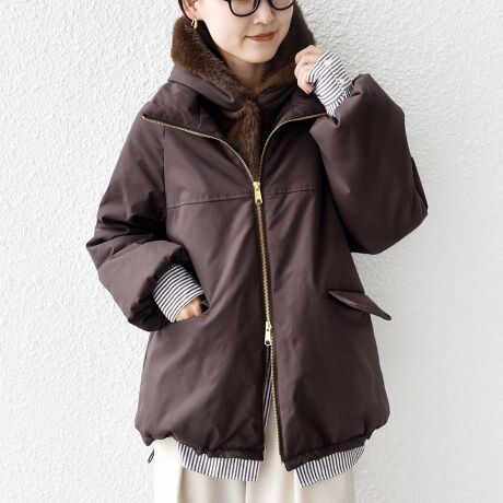 フェイクファー部分はミンク調で上品な柔らかい風合いです。
