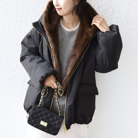 フェイクファー部分はミンク調で上品な柔らかい風合いです。