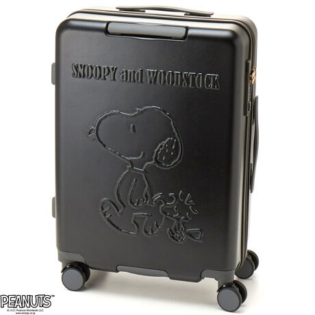 スヌーピーやオラフがエンボスデザインされたジッパータイプのスーツケース。内装はスヌーピーと仲間たちがいっぱいの賑やかなコミックデザイン。ファスナートップにはPEANUTSロゴが刻印されています。