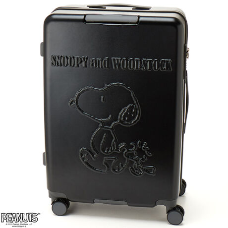スヌーピーやオラフがエンボスデザインされたジッパータイプのスーツケース。内装はスヌーピーと仲間たちがいっぱいの賑やかなコミックデザイン。ファスナートップにはPEANUTSロゴが刻印されています。