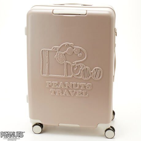 スヌーピーやオラフがエンボスデザインされたジッパータイプのスーツケース。内装はスヌーピーと仲間たちがいっぱいの賑やかなコミックデザイン。ファスナートップにはPEANUTSロゴが刻印されています。