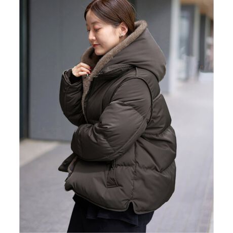 取り外し可能なファー付きフードで、2WAYの着こなしが楽しめます。