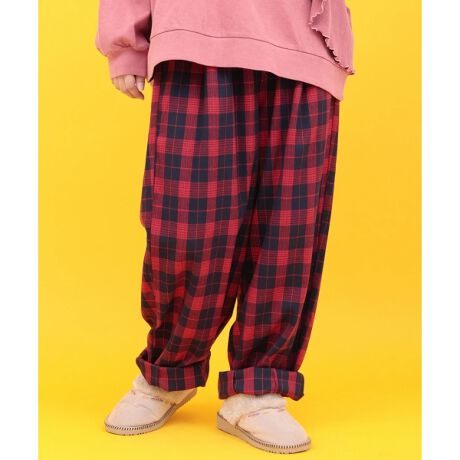 穿くだけでコーデが華やぐ、カラフルチェックのゆったりコクーンパンツ