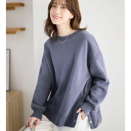 ・クルーネックデザインで首元がすっきりと見せ、カジュアル感を抑え大人っぽい印象に。
