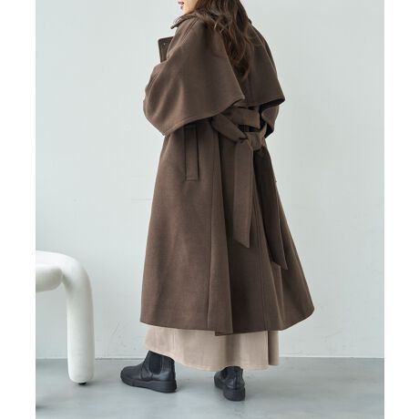 後ろ姿まで絵になる、しなやかな女性らしさを引き立てるロングコート。