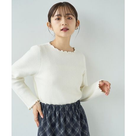 ネック、袖口、裾のメロウデザインが、ベーシックなデザインにさりげない甘さをプラス。