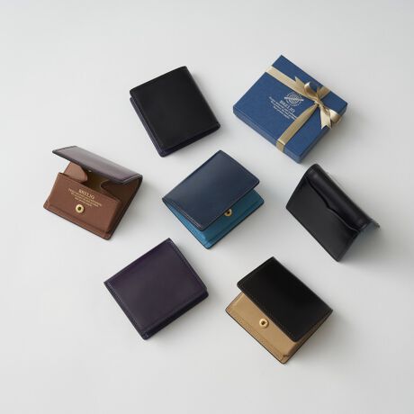 レーデルオガワ社製の希少なコードバンを全面に使用。手のひらに収まるコンパクト設計ながら、BOX型ならではの大きく開く口で中身をひと目で確認でき、小銭の取り出しもスムーズです。内装はコインが見やすい浅め設計で、支払い動作も美しく。縫製はコバまで丁寧に仕上げ、日常使いの耐久性と上質感を両立しました。ユニセックスで持てるミニマルな佇まいは、ビジネスにも休日にも自然に馴染みます。