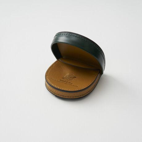 レーデルオガワ社製の希少なコードバンを用いた、クラシックな馬蹄型小銭入れ。ふたを開くと受け皿状に大きく開き、硬貨が見やすくこぼれにくい設計です。手のひらにすっと収まるコンパクトさと、縫製・コバ処理まで丁寧に仕立てた上質感が毎日の所作を美しく演出。幸運を呼ぶといわれるモチーフはギフトシーンでも存在感を放ち、ユニセックスにお持ちいただけます。