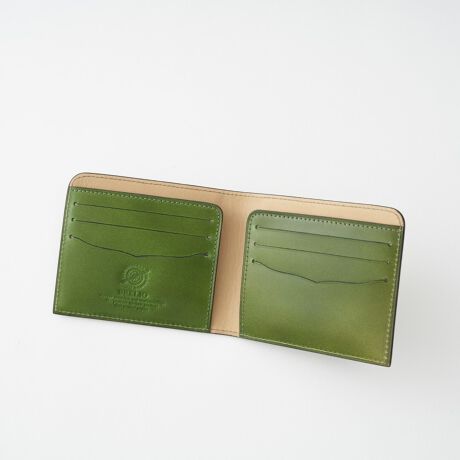 レーデルオガワ社製コードバンの凛とした艶を、日常使いに心地よい二つ折りへ。構造をシンプルにすることで開きがよく、お札の出し入れがよりスムーズに。内側のカードポケットにもコードバンを配し、手の内で感じる高級感を一層引き立てます。外側にスナップ小銭入れを配置することで本体の厚みを抑え、ジャケットやミニバッグでも美しく収まります。