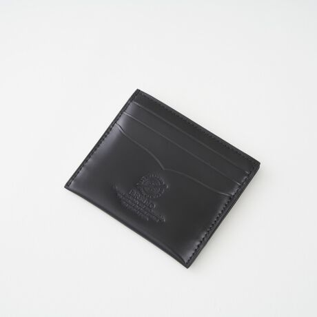 レーデルオガワ社製コードバンを贅沢に使用した、スリムなカードケース札入れです。左右に3つずつ計6枚のカードポケットを備え、中央ポケットには折り畳んだ紙幣も収納可能。マチを省いた設計でポケットへの収まりもよく、スーツスタイルにも自然に溶け込みます。持つたびに感じる上質な手触りと、コードバンならではの深い艶が、使い込むほどに味わいを増します。