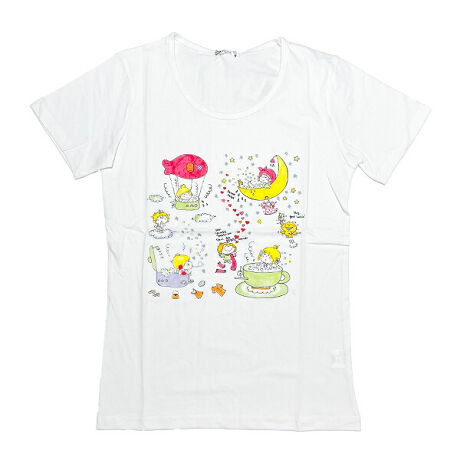 水森亜土の半袖プリントTシャツです。可愛いキャラクターたちが色んなお風呂に入っているデザインがとってもキュート☆S、M、Lのサイズ展開となりますので家族やお友達とお揃いにしやすいのが嬉しい〜♪1枚持っていれば便利に使えます☆彡【サイズ:LLサイズ(バスト:93〜101cm、身長:154〜162cm)】