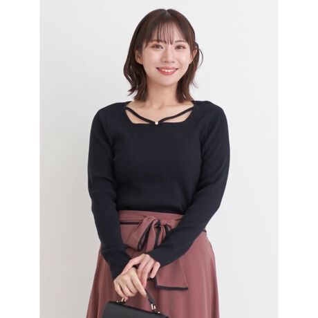 ・ネックレスいらずの顔周りに華やかなアクセントをプラスしてくれるビジュー付きデザイン。