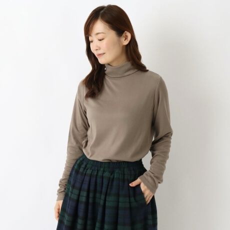 柔らかな両面起毛素材使用。1枚でも重ねても使える万能なタートルネック。