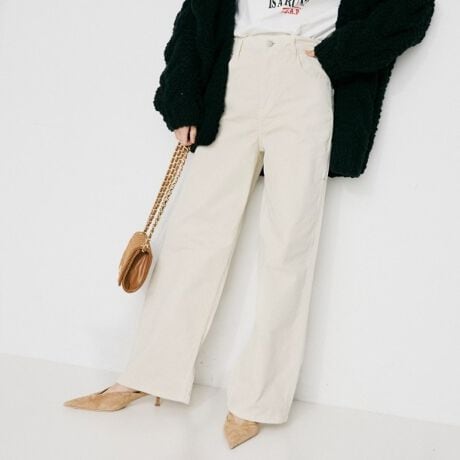 ワイドストレートシルエットは、タイトなトップスをインしてすっきりとまとめたり、オーバーサイズのスウェットやニットでリラックス感を出すスタイリングも◎。