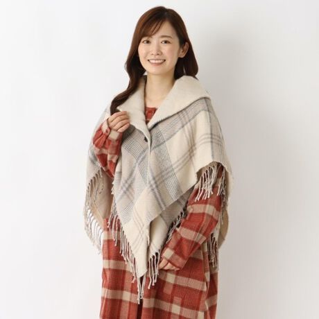 【リンネル12月号掲載】チェック柄 リバーシブルギャザーケープ