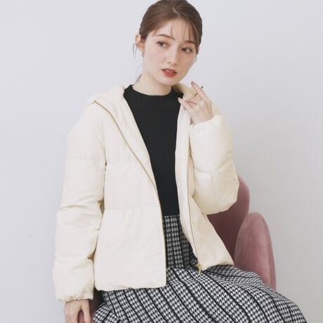 アイボリー(004) グレージュ(050) 表地:本体 ポリエステル100% ファー部分 ポリエステル100% 裏地:ポリエステル100% 詰物:ダウン90% フェザー10%