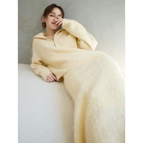 アルパカブレンドのシャギーを使用したニットコレクションシリーズのフレアスカートは、上質な風合いが魅力的。
