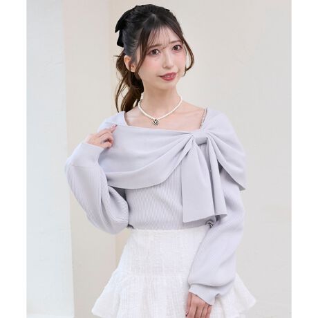 サイドに大きなリボンディテールをあしらった、主役級のニットプルオーバー。