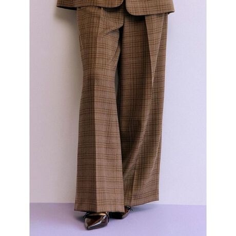 縦のラインを強調するセンタープレスを効かせた、美脚効果抜群のストレートパンツ。深めに入れたタックが立体的なシルエットを生み出し、身体のラインを拾わずにすっきりと着用いただけます。ウエストにはベルトループを配し、ベルトでマークすれば自然とメリハリが生まれるデザインに。オフィスシーンはもちろん、カジュアルスタイルにもなじむ、着回し力の高い一本です。