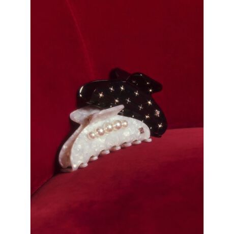 <b>【パール付きのヘアクリップが洗練されたムードを演出】</b>