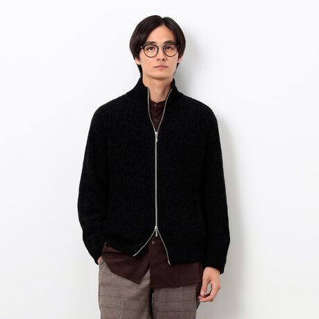 ドライバーズニットとはトラック運転手が着ていたニットが起源でフロントジップは逆開仕様のスタンドカラーが基本デザイン。