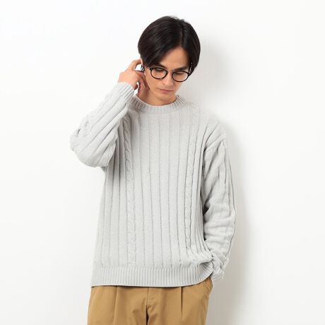 前身頃両脇にさりげなくケーブル柄を入れたデザインがポイントです。