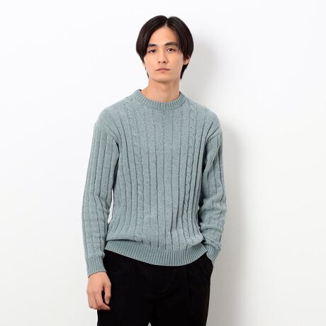 前身頃両脇にさりげなくケーブル柄を入れたデザインがポイントです。