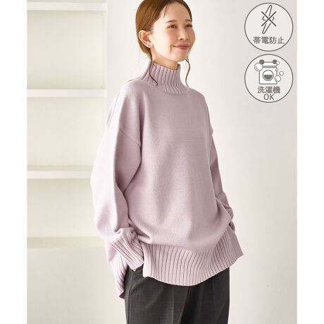 ・たっぷりシルエットでイージーに着られるタートルニット。