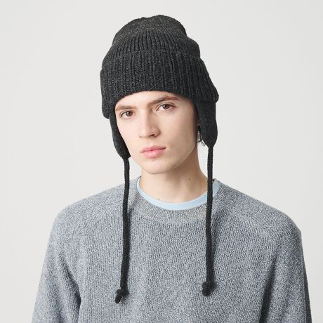 耳当て付きのニットワッチキャップ。