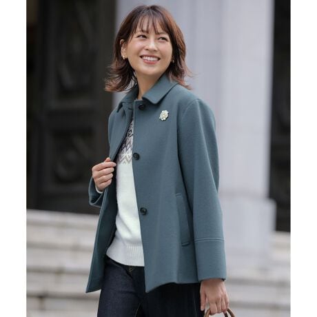■デザインクラシックなステンカラーデザインが魅力のコート。上質なウールを使用し、やわらかく包み込まれるような暖かさと、軽やかな着心地を両立しました。程よくゆとりを持たせたデザインで動きやすく、すっきりと見えるシルエットが魅力。オンオフ問わず幅広いシーンで活躍し、きれいめにもカジュアルにも合わせやすい1着です。流行に左右されないベーシックな仕立てなので、長く愛用頂けます。総裏ありです。カラーは、洗練された雰囲気のトップグレー(#003)、明るく女性らしい印象のベージュ(#033)、スタイリングの鮮度を上げるティールブルー(#074)、シーンレスに活躍する大人なネイビー(#075)の4色展開です。