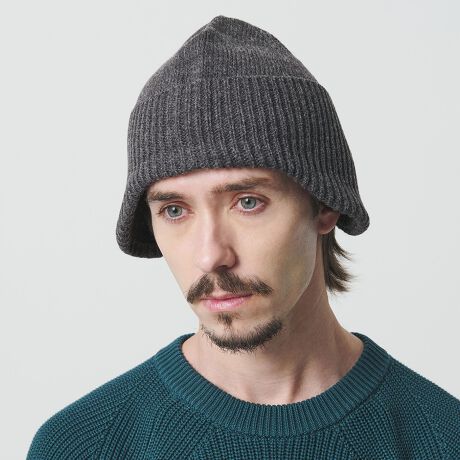 両サイドが少し下に伸びたユニークなシルエットが印象的なワッチキャップ。