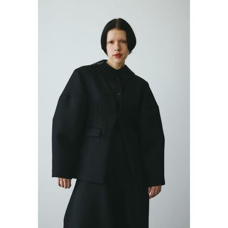 袖のバランスとボディーのバランスが絶妙なジャケット肩周りはふくらみを出し、見頃部分はスッとした見え方になっています。前はホックで止められるようになっています。リサイクルポリエステルを使用したアムンゼン組織の三重織です。打ち込みのバランスにより、張り感や膨らみ感、軽さを兼ね備えた厚地素材です。CLOジャケット[注意事項] ※画像の商品はサンプルです。実際の商品と仕様、加工が若干異なる場合があります。 ※画像の商品は光の照射や角度、お使いのモニター環境により、実物と色味が異なる場合がございます。 ※着用、お取り扱いの際は、アテンションタグをご確認ください。