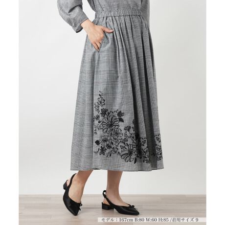 品のあるグレンチェックに、繊細な花柄刺繍をあしらったロング丈のフレアスカート。クラシカルな表情とフェミニンなエッセンスが絶妙に調和し、装いに奥行きを与えます。生地はコットンに麻をブレンドし、ナチュラルな風合いと軽やかな着心地を両立。ウエストはギャザー仕様で、ふんわりとしたボリューム感を描きながらもすっきりとした見た目を叶えます。同素材のトップスと合わせれば、セットアップとしても楽しめる一枚。日常からお出かけまで、幅広いシーンで活躍します。